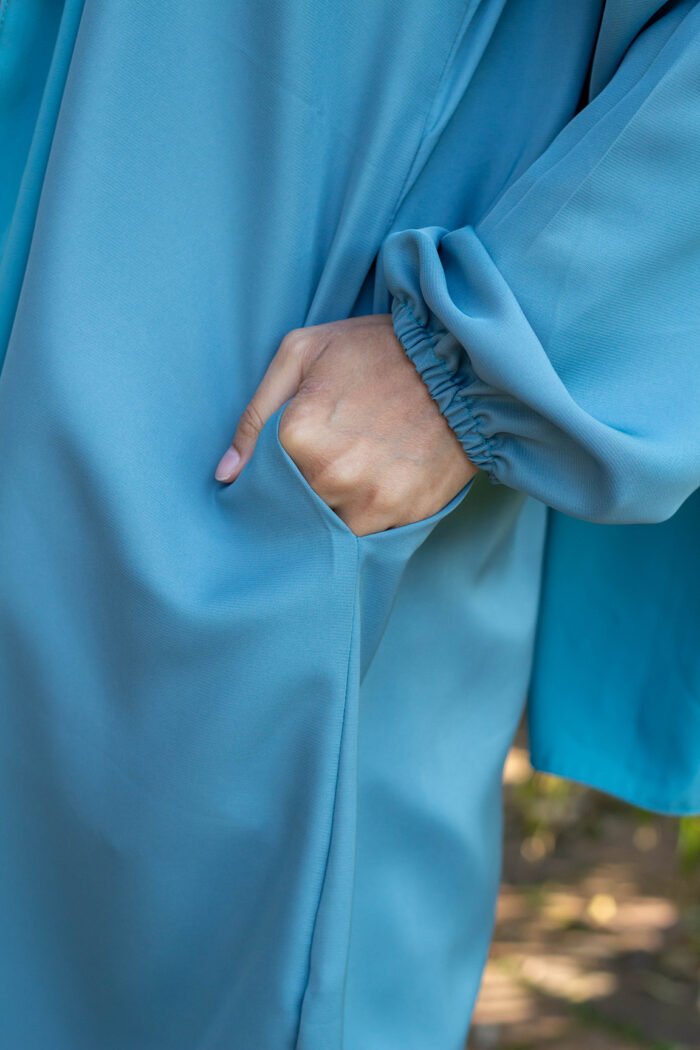 Its relaxed silhouette allows for comfortable movement, while the elasticated sleeves stay gently in place — making it especially convenient for wudhu. Side pockets offer practical functionality without compromising the garment’s elegant flow.