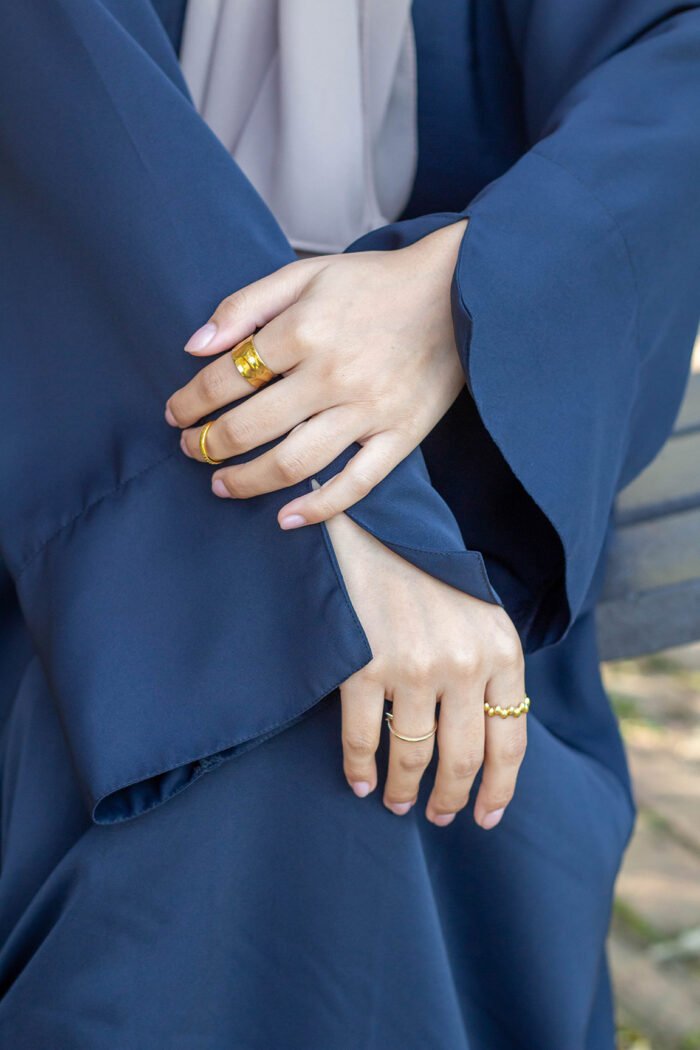 Available in two timeless shades — Stone and Dark Blue — the Safa abaya is a must-have for your modest wardrobe, whether you’re packing for pilgrimage or dressing with purpose each day.