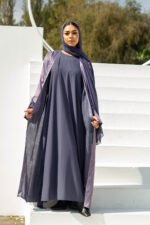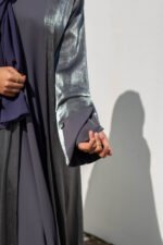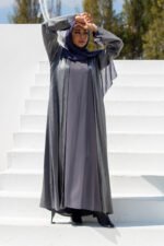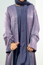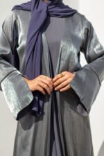 This design features a luxurious and contemporary look, crafted from a shimmering, textured fabric that elevates modest fashion. The flowing silhouette exudes sophistication, while the bell sleeves with elegant buttoned cuffs add a refined touch. The lightweight material offers movement and grace, making it ideal for both casual and formal occasions. Available in a range of soft, muted tones with a subtle sheen, this abaya is perfect for those who appreciate understated glamour. Whether styled with a matching belt for a structured fit or left open for a relaxed drape, this piece embodies elegance and versatility.