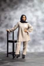 The Sandrift Co-Ord Set is where graceful design meets thoughtful comfort. Tailored in breathable Besiktos fabric, this set feels weightless and works beautifully across seasons. The tunic flows effortlessly, accented with gathered sleeves and distinctive tie-cuff detailing for a soft, feminine touch. Side slits and discreet pockets add practicality without compromising on modesty.