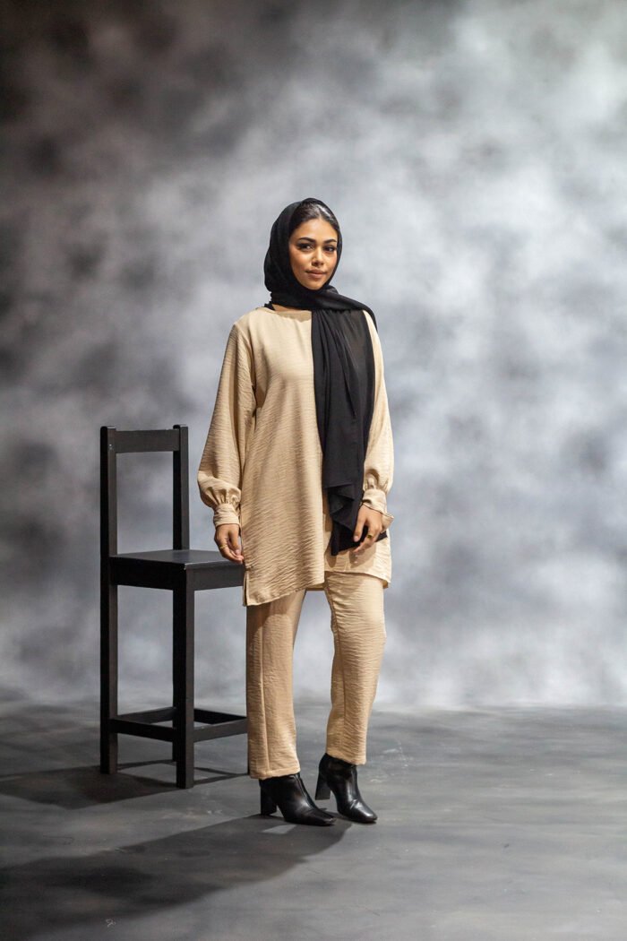 Available in three versatile shades ā Black, Latte, and Sand ā this co-ord is your go-to for modest fashion that moves with you.