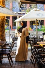 Designed in a classic abaya silhouette with a subtle inner belt, Seren adapts effortlessly to your shape — balancing flow and structure with quiet sophistication.