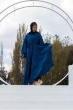 Introducing a design that embodies grace, simplicity, and refinement. Crafted for the modern woman who values both effortless style and understated luxury, this abaya is a true statement of elegance. With its flowing silhouette and delicately layered sleeves, this piece drapes beautifully, creating an ethereal movement with every step.