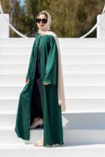 Made from premium satin, this abaya is designed to offer a soft, fluid feel against the skin, ensuring comfort while maintaining a luxurious sheen. Each piece is individually handcrafted, ensuring that every stitch reflects the highest level of craftsmanship. From the precise tailoring to the flawless finish, this abaya is more than just clothing—it’s an experience of sophistication and grace.