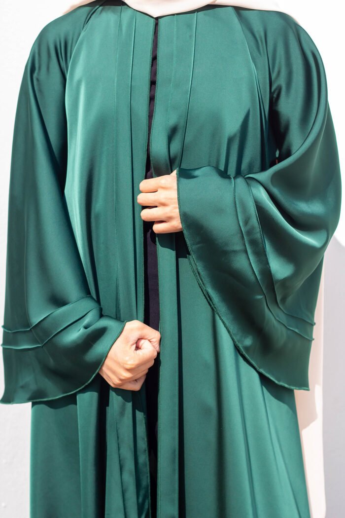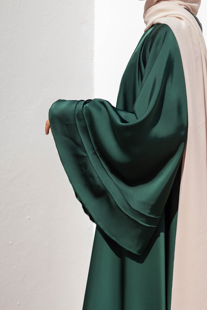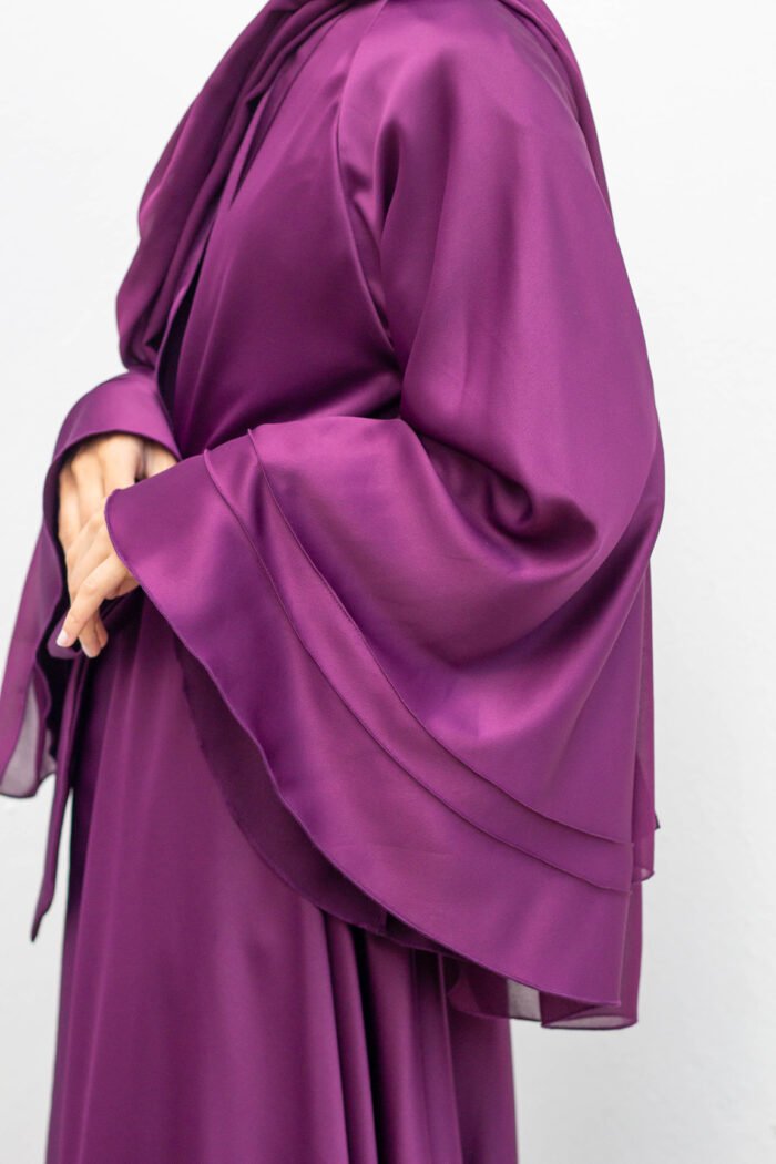 Made from premium satin, this abaya is designed to offer a soft, fluid feel against the skin, ensuring comfort while maintaining a luxurious sheen. Each piece is individually handcrafted, ensuring that every stitch reflects the highest level of craftsmanship. From the precise tailoring to the flawless finish, this abaya is more than just clothing—it’s an experience of sophistication and grace.