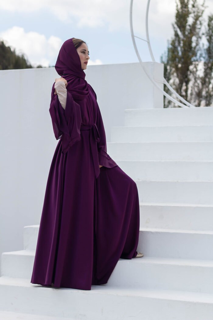Introducing a design that embodies grace, simplicity, and refinement. Crafted for the modern woman who values both effortless style and understated luxury, this abaya is a true statement of elegance. With its flowing silhouette and delicately layered sleeves, this piece drapes beautifully, creating an ethereal movement with every step.
