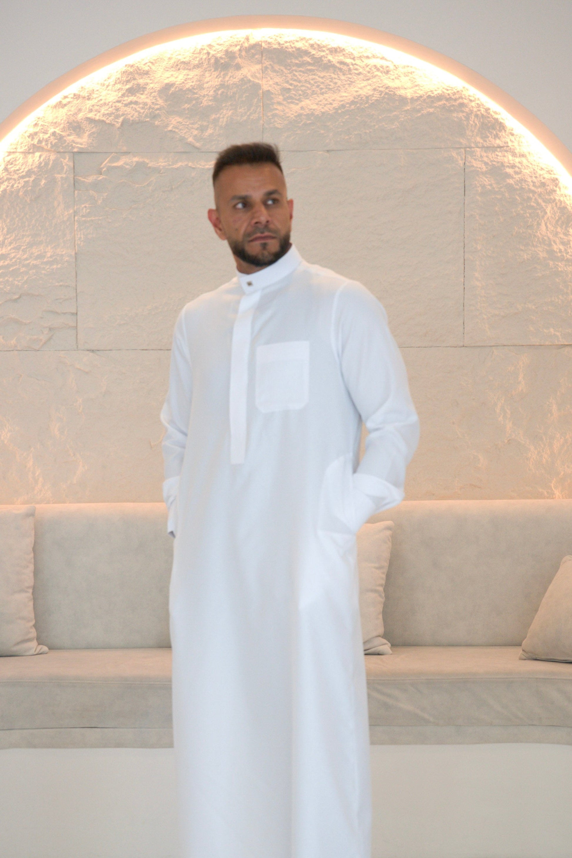 Finished with elegant cuff links, the Collared Thobe brings a distinguished touch to a classic silhouette, elevating it beyond the ordinary. Whether worn during Ramadan evenings, Eid gatherings, or formal moments, it is a timeless piece created for men who appreciate quiet sophistication and lasting quality.